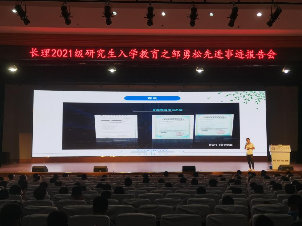 邹勇松与同学们讲述了自己与肾病斗争20余年的经历。“读研的3年也是我肾病最严重的3年,每天必须要在自制的简陋帐篷里面进行4次透析才得以维持生命,但我从来没向病魔低过头”邹勇松分享道。在读研的三年里,他坚持学习与科研,获得7项软件著作权和发明专利,并发表SCI论文1篇。同时,即使在病床上他依然力所能及地回馈社会。他自费研发并制作“共享打印机”免费供同学们使用。他自愿登记成为器官捐献者。在疫情期间,他更是将自己最需要的口罩免费捐赠给需要的人。“20多年来,命运待我从未仁慈。但世界以痛吻我,我偏要报之以歌”邹勇松说道。他也寄语全体研究生“青春是我们唯一拥有的,用来奋斗未来的财富”,希望大家在研究生阶段勤奋学习,刻苦钻研,用专业服务社会,服务人民。