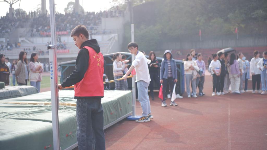 10月29日早上7点,在穿戴好统一的志愿者服装和工作牌后,志愿服务工作正式开始。在本次志愿服务工作中,共有60名志愿者和75名助理裁判分别承担场地协助和比赛协助等服务工作。在运动会中,志愿者承担了比赛场地布置、运动员引导以及赛场垃圾清理等志愿服务工作。而助理裁判则负责协助主裁判准备各类田径及小项目比赛用的器械以及现场信息记录等工作。在两天中,志愿者们始终坚持以最热忱的态度为大家提供最好的服务,协助校运会顺利举办。