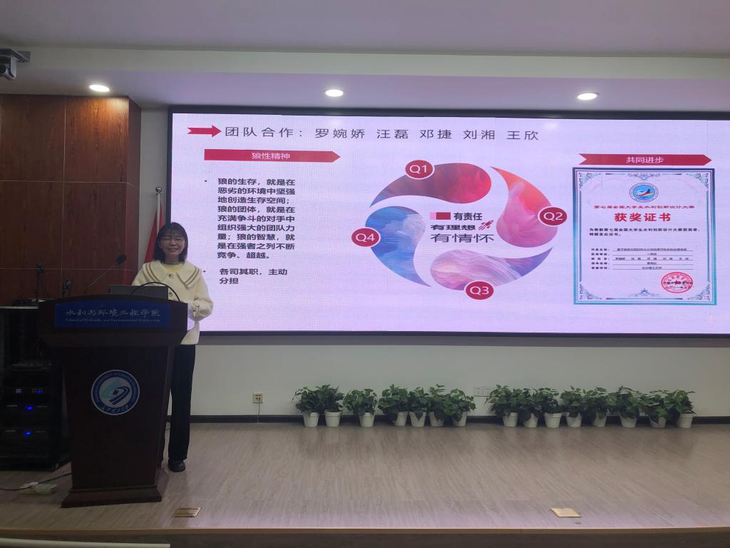 为加强2020级本科生对全国大学生水利创新设计大赛的了解,进一步激发同学们的科研热情,11月7日晚,水利与环境工程学院在云塘校区工科三号楼B319举办2021-2022学年第1期“水润讲坛”,主题为科技创新领跑智慧水利--全国大学生水利创新设计大赛回顾与展。2019级年级辅导员甯子豪出席。本次活动由汪磊、刘虎臣、罗婉娇三位同学进行主讲,与2020级70余名本科生做经验分享交流。