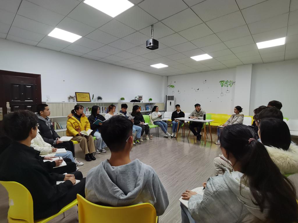 会中,主要学生干部们进行集中学习。会后,由主要学生干部牵头,带领院团委学生会全体学生干部对党的十九届六中全会精神进一步展开深入研讨。