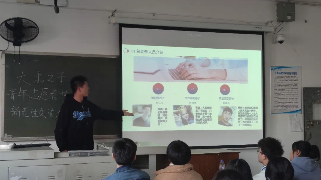 交流会上,唐家盛对大禹之子的协会的由来、获奖情况、内部组成、主要活动四个方面进行了介绍。在部门介绍中,各部门志愿者代表就各个部门的职能、部门成员和部门未来规划进行了介绍,全体与会成员对于协会的情况进行了整体且深入的了解。