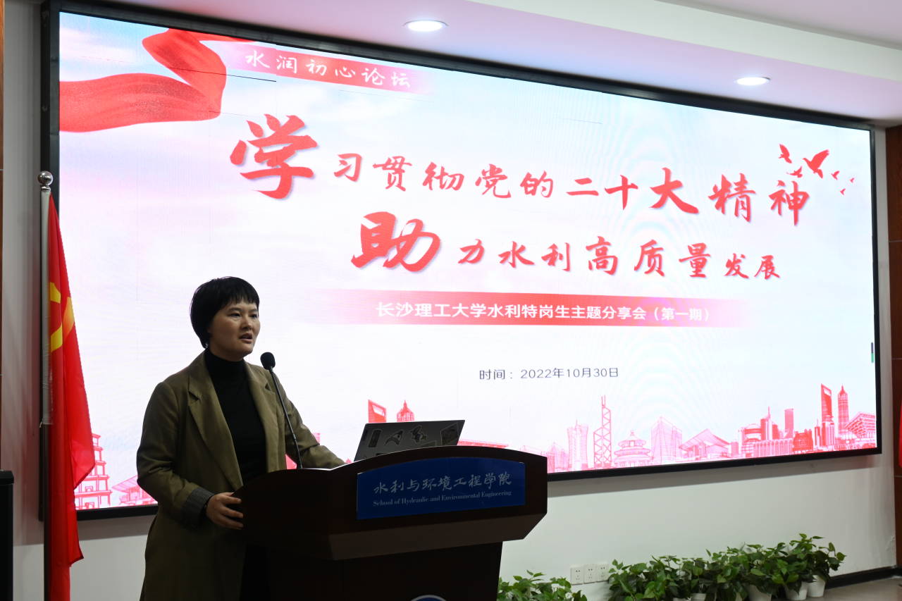 10月30日晚,水利学院在云塘校区工三-B319开展了以“学习贯彻党的二十大精神,助力水利高质量发展”为主题的特岗生专题学习分享会,通过学生党员带头学,学生骨干分享学,全体同学一起交流学的形式展开。学院党委副书记银波出席,全体特岗生参加,分享会由卢志程主持。