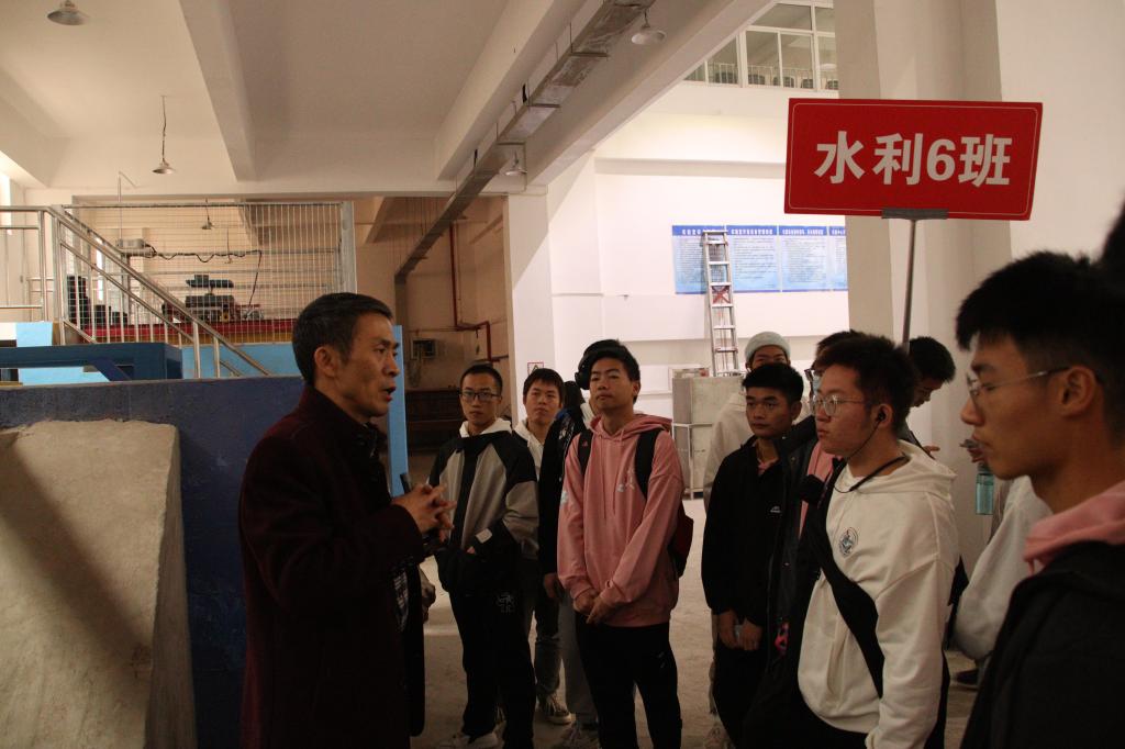 在水利工程结构(试)实验室,张戈老师介绍了都江堰水利枢纽工程通水演示仿真实训装置、升船机和港航实训大坝模型等,详细说明了水利工程运行基本原理,演示了升船机的使用方法,并强调“想要学好专业知识,就要多思考、多钻研、多实践”。在水利实验中心,韩振英老师指出“这是华南地区最大的水利实验教学研究中心,满足了课堂教学、实验教学以及综合工程训练三方面教学实践的需求,同学们要从基础专业知识入手,加强动手能力,培养工科生的创新精神和实践能力”。