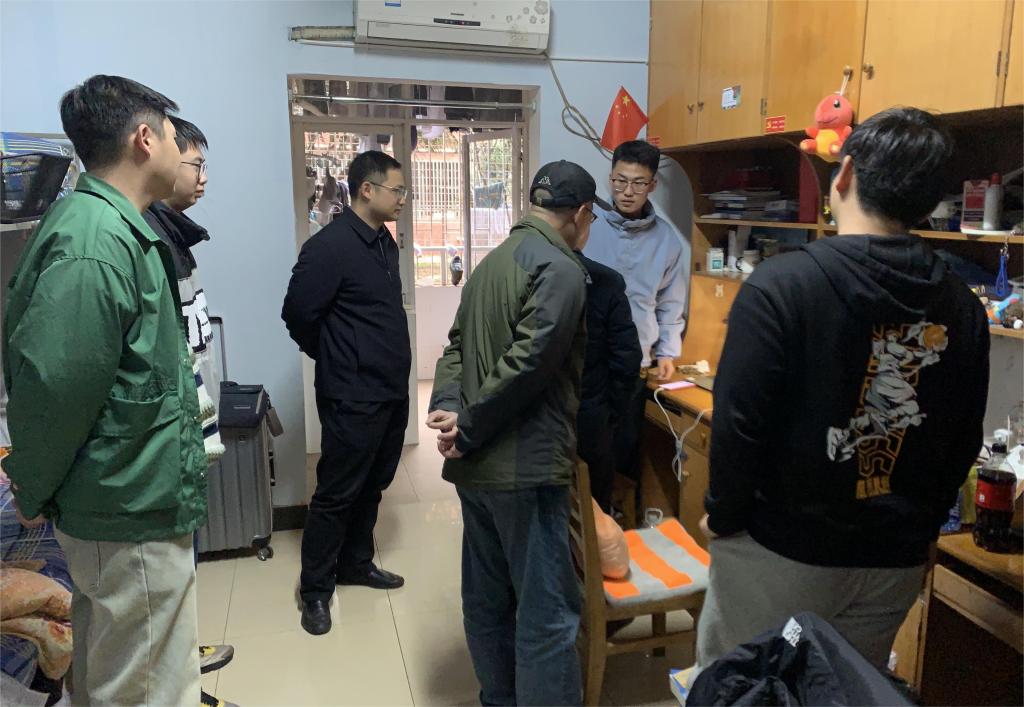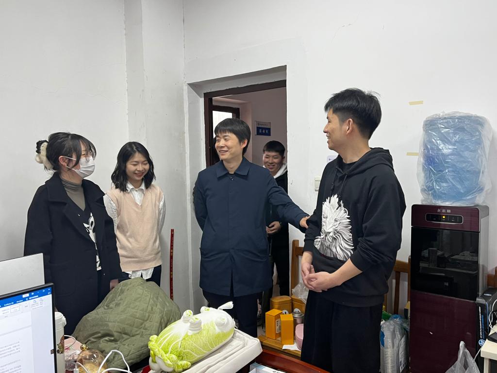 在下寝过程中,学院领导亲切地询问了同学们的寒假的学习生活情况,喻玲娜勉励同学们做好考前各项准备工作,践行“健康第一”理念,当好自身健康第一责任人,同时她鼓励同学们要形成相互关心、相互关怀的良好氛围。陈杰期望同学们要珍惜学习时光,积极参加科学研究,在学习上下苦功夫,提升自己的核心竞争力,就同学们关心的考研复试、调剂详细作了说明。院领导和老师们现场解答了同学们提出的问题,并表示同学们有学习、生活等方面的困难和问题要及时与学院联系,学院将尽力帮助同学解决。