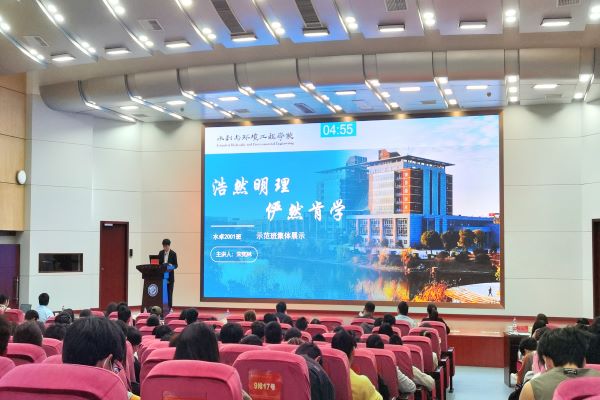 2022年“示范班集体”创建活动于2022年5月启动,经过班级申报、学院推荐和考核验收,确定20个班级为“示范班集体”候选班级。水卓2001班以先进性建设为主轴,制度建设为保障,寻浪的方向,逐梦的痕迹,形成“一轴两追一保障”的建设格局。班长宋宪林从班级建设、思想建设、学风建设和文化建设四个方面介绍班级建设举措和成效。