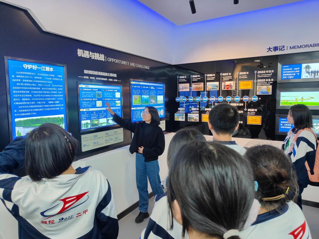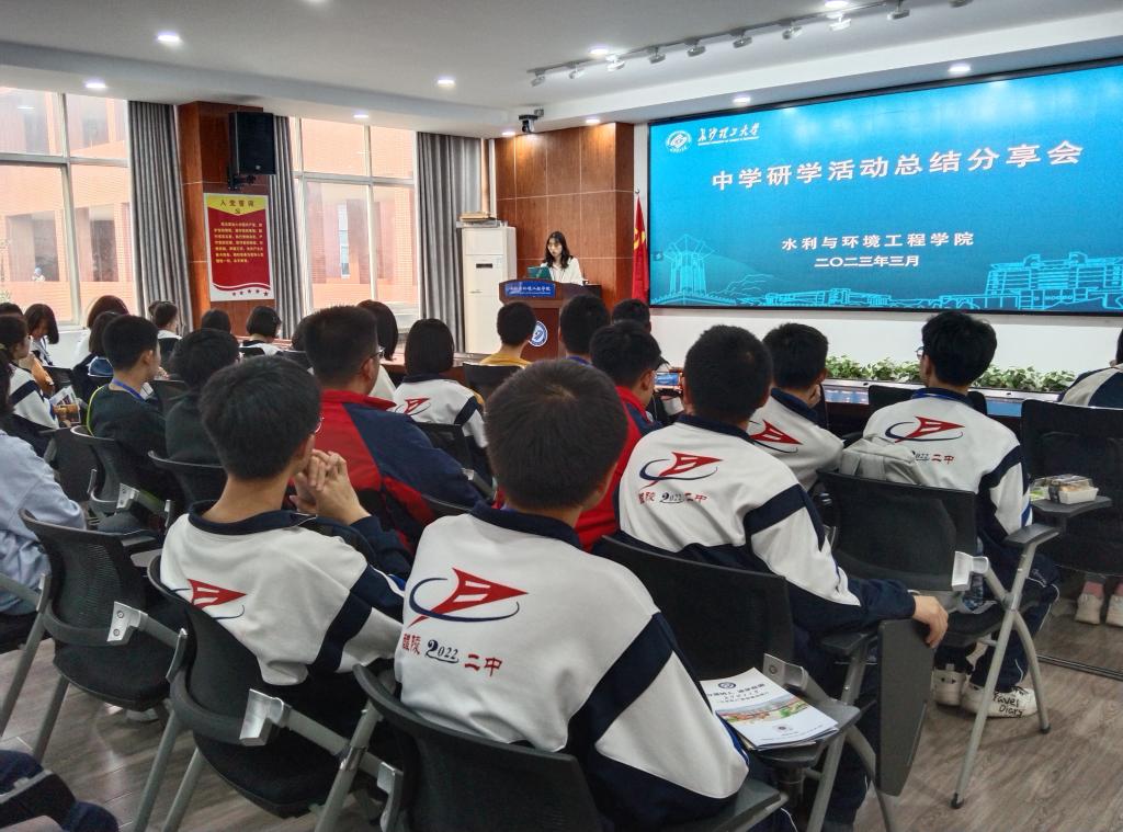在志愿者的带领下,师生们参观了我院洞庭湖水环境治理与生态修复湖南省重点实验室,文晓凤老师基于智慧洞庭信息化平台建设成果解读了现代信息技术如何赋能水利高质量发展,使学生们初步了解了水利工程学科。参观过程中,同学们兴趣浓厚,针对洞庭湖水环境、水文化及水利信息化等方面的问题与老师们进行了热烈的交流。随后,师生们一同参观了水利结构实验室,认识了都江堰、三峡大坝等著名水利工程实训模型,张戈老师细致的讲解和演示也进一步激发了同学们对于水利工程的浓厚兴趣和对水利专业的憧憬向往。在总结分享会上,我院2019级港航专业学生欧阳新宇介绍了自己进入大学以来的成长经历和收获,鼓励来访学生积极备考,努力实现自己的大学梦。辅导员甯子豪针对我院的专业设置及学科优势以及报考的相关政策等方面进行了讲解。