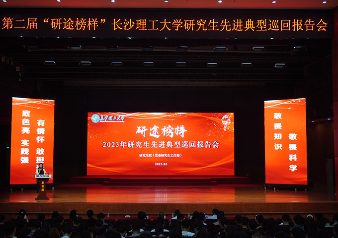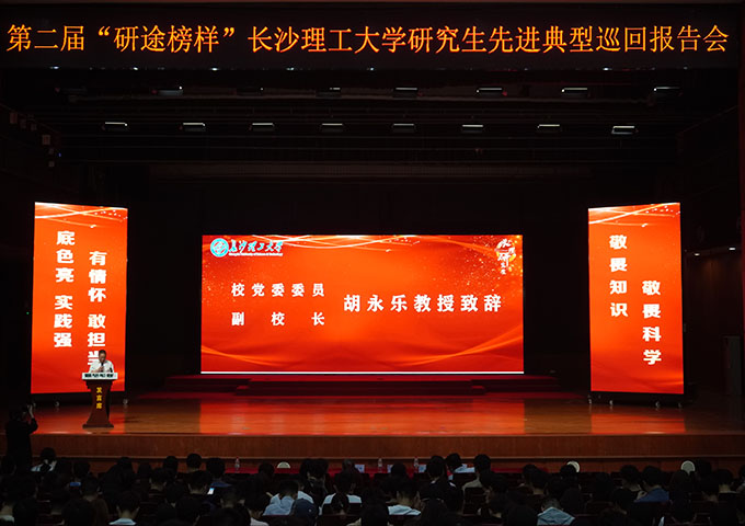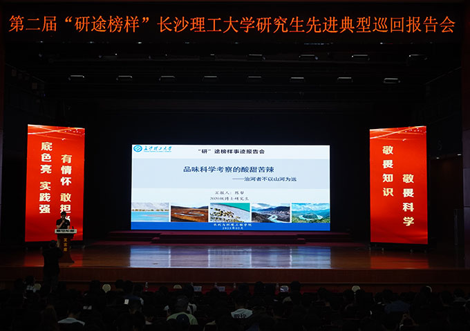 为深入贯彻落实党的二十大精神,推进拔尖创新人才培养,弘扬“敬畏科学、敬畏知识”的价值追求,发挥优秀研究生榜样的引领作用,5月6日晚19点,第二届“研途榜样”开云kaiyun体育研究生先进典型首场巡回报告会在云塘校区大会堂举行。校党委委员、副校长胡永乐教授、研究生院院长杨华峰教授、学生工作部副部长闾兰老师、校团委副书记杨晨老师、研究生院副院长兼研工部部长田上老师以及来自各学院的党委副书记、研究生辅导员出席本次活动,来自水利与环境工程学院等多学院的近千名师生代表参加本次活动。