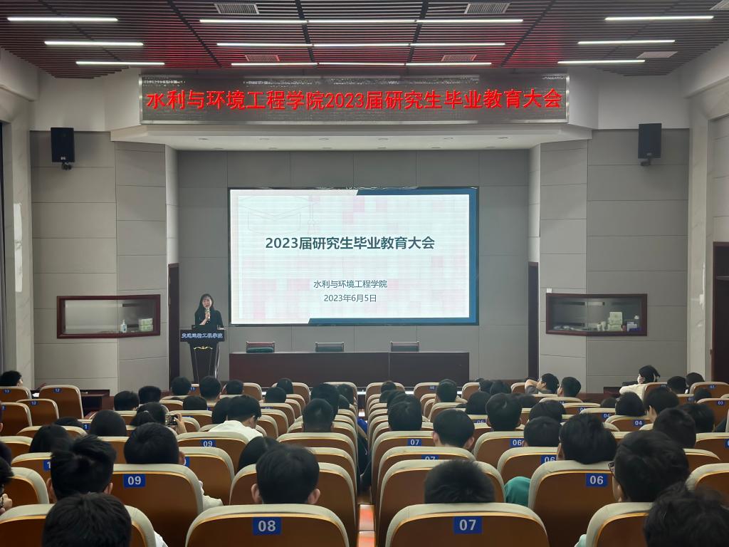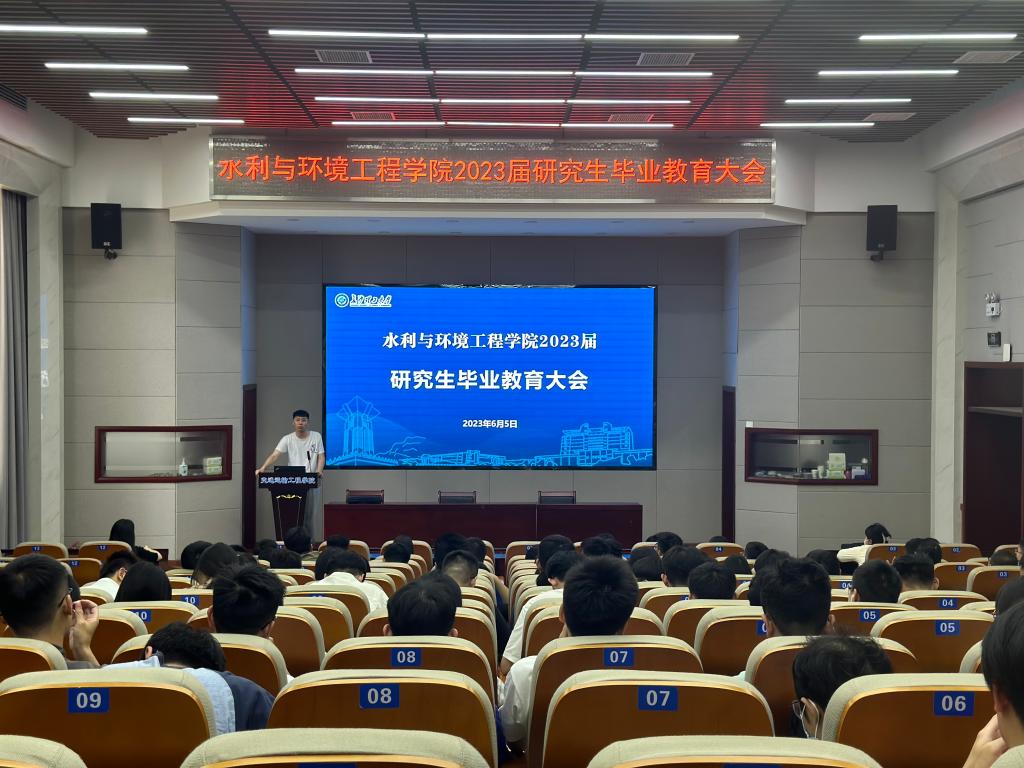 为引导毕业生坚定理想信念、增进毕业生对母校深厚感情,水利与环境工程学院于6月5日下午15:00在工科二号楼B301召开2023届研究生毕业教育大会。水利与环境工程学院研究生辅导员杜丘、就业专干甯子豪出席会议,本次会议由水利研2001班班长杨恩喆主持。