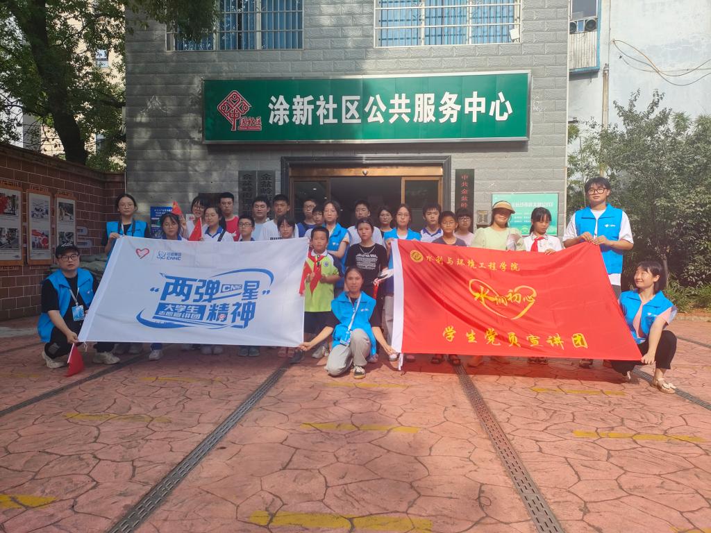 “什么是‘两弹一星’?大家知道哪些‘两弹一星’的故事?”7月13日,水利学院“水润初心”宣讲团前往涂新社区开展“两弹一星”精神宣讲活动。