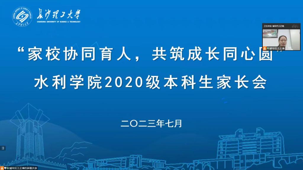 为深入推进家校协同育人,形成教育合力,7月6日晚19:30,水利学院召开了“家校协同育人,共筑成长同心圆”2020级本科生线上家长会,院长陈杰、院党委副书记银波出席会议,近300名家长线上参会,会议由年级辅导员王正博主持。