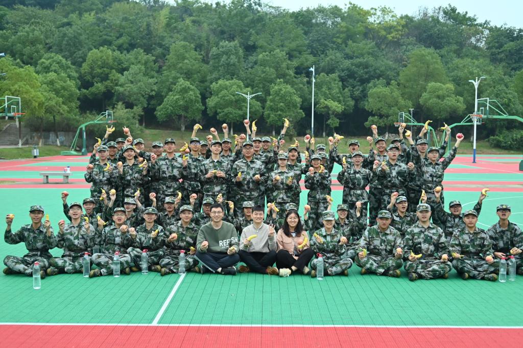 喻玲娜观看各排展示训练成果,详细了解军训进展情况,走到训练场中间与带训教官和参训新生亲切交流。她对每一位坚守一线的带训教官表示感谢,对同学们高昂的士气以及良好的军容军貌表示赞许,并充分肯定其不怕苦不怕累的精神。喻玲娜表示,希望同学们以“听党指挥、能打胜仗、作风优良”为指引,通过军训厚植爱国情怀,增强国防观念;练就吃苦耐劳、不畏艰难的精神品格与勇于挑战拼搏的自信心;培养好集体与组织观念,增强同学间向心力、凝聚力,上好军训这堂大学第一课。随后,她为新生送上了定制的刻有专属姓名与学院品质文化标识的可口可乐,为教官送上精心准备的慰问大礼包。