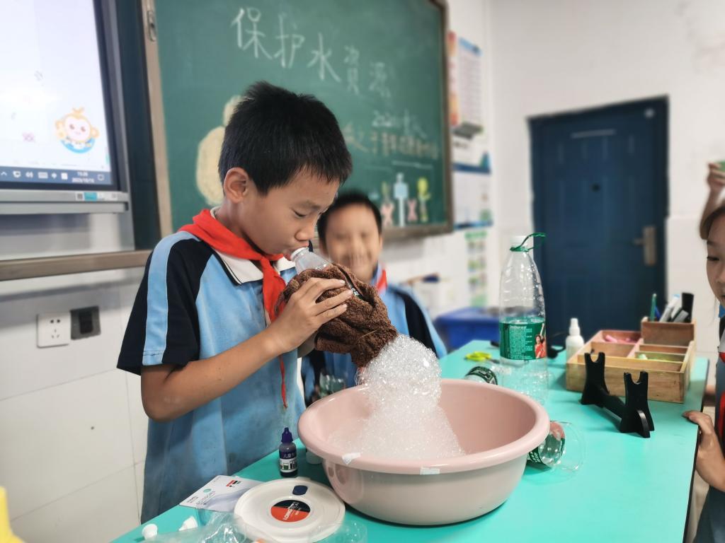 水除了生活中常见的作用外还能用来干什么呢?水究竟有多么奇妙呢?带着这些问题,志愿者组织小朋友们开展了与水有关趣味小实验。“小小的水竟然可以做那么多的小实验呀!真是太神奇了呢!”贺诗洋说道。通过趣味小实验,小朋友们对水资源有了更深刻的认识,懂得了节约用水的重要性。