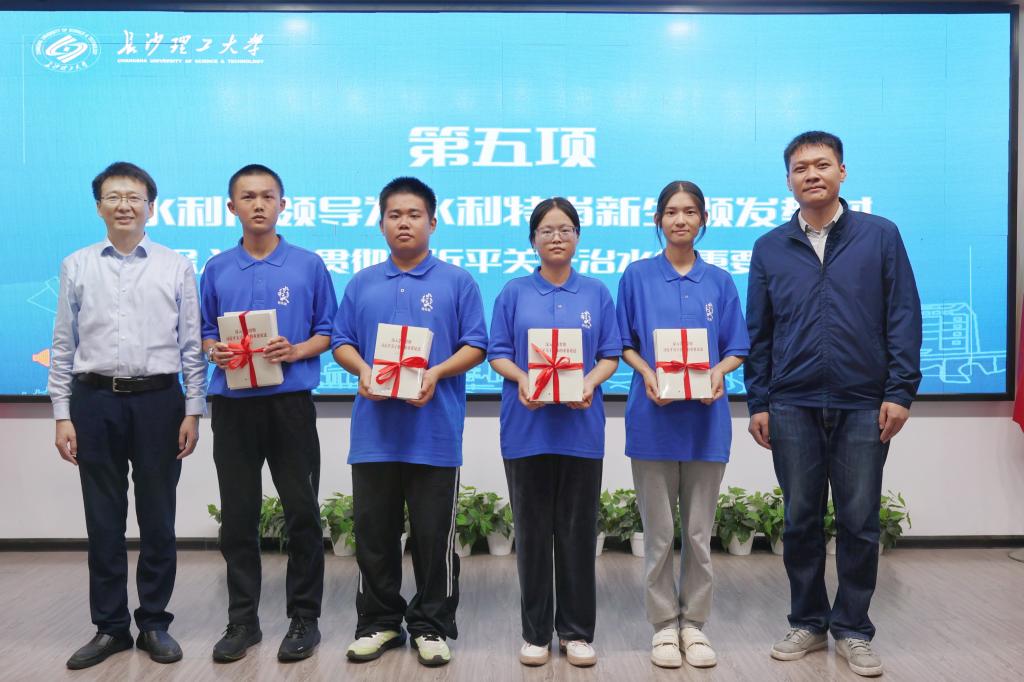 湖南省水利厅唐光泽和蒋国俊为水利特岗新生颁发教材《深入学习贯彻习近平关于治水的重要论述》,期望同学们持续深耕,牢记习近平总书记“守护好一江碧水”的殷殷嘱托,锤炼品德修为,学好专业知识,练就过硬本领,厚植为民情怀,深入基层、扎根基层、服务基层,主动肩负湖南水利事业高质量发展的责任担当。