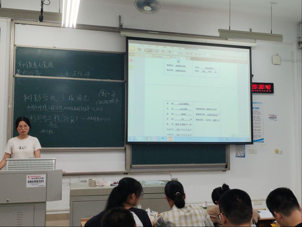为增强班级凝聚力,帮助新生更好地适应大学生活,水利学院于9月15日19:00在工科三号教学楼召开“树勤学风,立报国志”2024级本科新生第一次班会,新生班主任和2024级全体本科生到场参会。