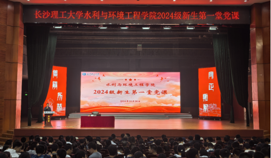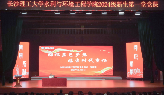 10月28日晚,水利与环境学院在云塘校区大会堂举行2024级新生第一堂党课,学院党委书记喻玲娜为2024级研究生、本科生新生讲授第一堂党课,研究生辅导员杜丘及951名新生参加,活动由2024级辅导员李永睿主持。