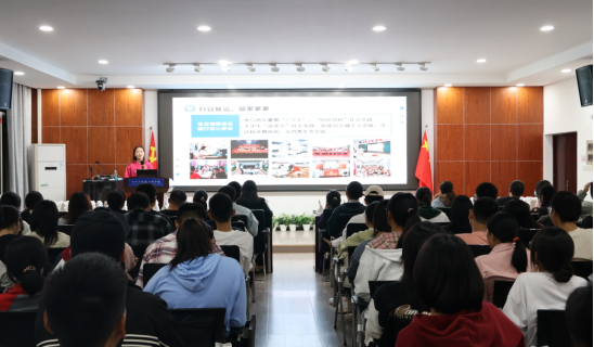 杜春艳作总结发言。她指出,环境工程专业在考研、保研、就业等方面涌现众多优秀学生,鼓励24级新生们向优秀学长学姐们学习,内外兼修、全面发展,学好专业知识,练就过硬本领,以实际行动投入到建设绿水青山中去。