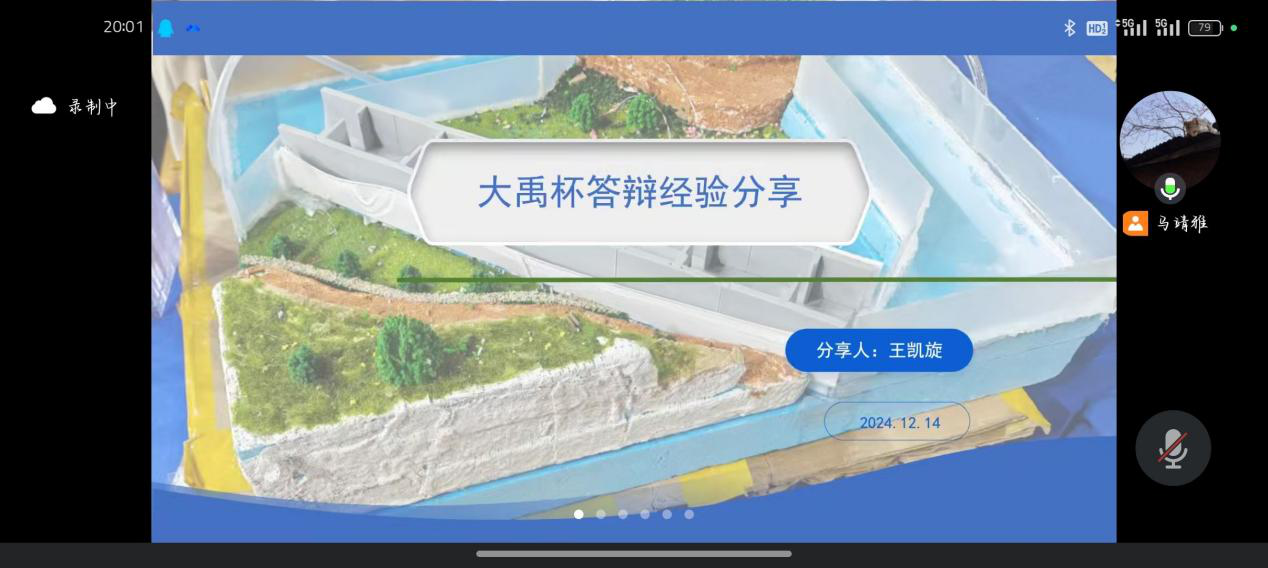 12月14日晚,水利学院举办第五届“大禹杯”水利模型答辩经验线上分享会。本次会有由往届“大禹杯”优秀小组代表水利类2303班王凯旋、水利类2302班吴亚霖主讲,通过路演的50个参赛小组参加。