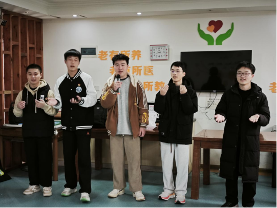 活动当天,水利类2402班准备了丰富多彩的表演节目。从充满民族风情的《奢香夫人》,到唤起童年回忆的《外婆的澎湖湾》,再到充满朝气的《让我们荡起双桨》,以及洋溢着欢快氛围的《桃花朵朵开》和《暖暖》,现场演唱的每一首歌都饱含着班级同学对老人们的祝福。在看完同学们的歌曲表演后,养老院的刘爷爷主动提出要清唱《最美的歌儿献给妈妈》,刘爷爷的歌声洪亮有力,唱到一半时,他还将话筒递给班级同学传唱,让现场气氛变得更加活跃,他表示特别感谢同学们的来访、感谢敬老院的照顾。接唱的郭禹良同学说道:“爷爷递来话筒的瞬间,我感受到一种跨越年龄的信任与期待,爷爷的歌声里不仅承载着一代人的记忆与情怀,洪亮的歌声也代表着他们拼搏、奋斗与奉献的一生,非常值得我们学习。”