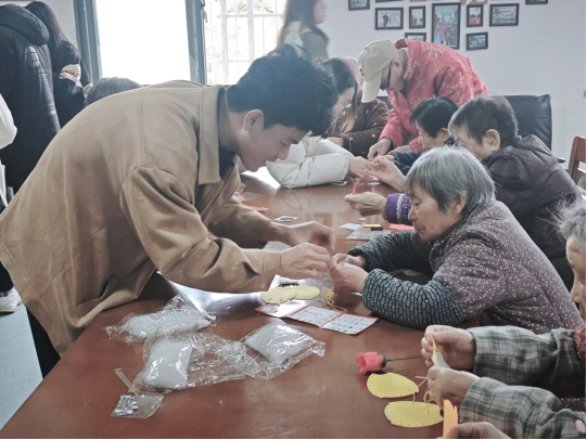 表演结束后,水利类2402班的同学们还精心组织了一系列趣味游戏。“筷夹杯趣”、夹乒乓球、杯底传乒乓球、乒乓球投壶等运动类游戏,既能帮助老人们活动身体,又充满了趣味性;手工类游戏“针织缝补十二生肖娃娃”,让老人们重温传统手工艺,感受传统文化的魅力。在欢声笑语中,班级志愿者和老人们打成一片,与老人们亲切交谈,倾听他们的故事,了解他们的生活,让他们感受真正的关心和陪伴。学习委员杨俏说:“通过这次敬老院之旅,我发现了爷爷奶奶们的可爱之处,年轻人和老年人也可以成为无话不谈的朋友,跨越年龄代沟的方法也许就在足够的爱与陪伴当中。”