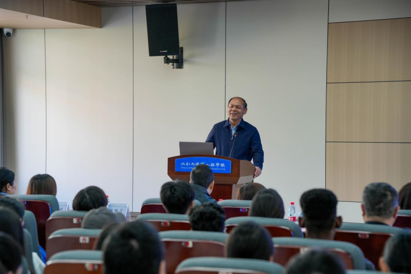 湖南省水利学会理事长钟再群围绕聚焦水安全保障体系、深化节水实践路径和共建水利协作平台三个方面发表讲话。他指出,高校青年学子要关注水安全,聚焦饮用水安全、农业灌溉安全、水生态安全等方面开展理论研究和科技攻关,以专业知识服务水安全战略;要关注节约用水,增强节水理念,养成节水习惯,传播节水文化,树立绿色风尚,从日常生活的一点一滴做起,助力构建节水型社会。他希望青年学子关注湖南省水利事业,踊跃参与省水利学会相关活动,积极开展政校联合课题研究,共同推动湖南水利高质量发展。