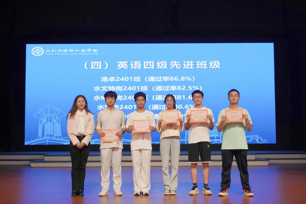 大会特别设置“榜样力量”先进个人分享环节。水文特岗2401班肖翊晗平均学分绩点3.98,她从“目标管理”“高效笔记法”“复习节奏”三方面传授学习心得;地信2401班高浩然英语四级632分,他强调“沉浸式学习法”,分享利用碎片时间精听、泛读的实用技巧;水利类2405班何佩澄作为读书活动先进个人分享了纸质阅读带给自身的成长力量,从书中感悟治水哲理,在实践中践行水利精神;给排水2202班王俊超以步履生春,勇攀历练成长的春山为题,分享了作为学生干部的信仰与使命,从拓荒山到攀高山再到赴群山,他鼓励新生“在服务他人中实现自我提升”。