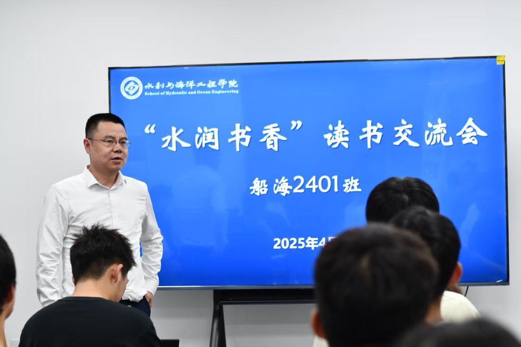 为深化专业认知、营造勤学善思的学风,4月17日,水利学院在“大禹之子”一站式育人社区开展船舶与海洋工程专业“水润初心”读书交流会。船海2401班班主任姚宇、专业教师游翔宇、年级辅导员王正博及班级全体同学到场参加,会议由张琪主持。