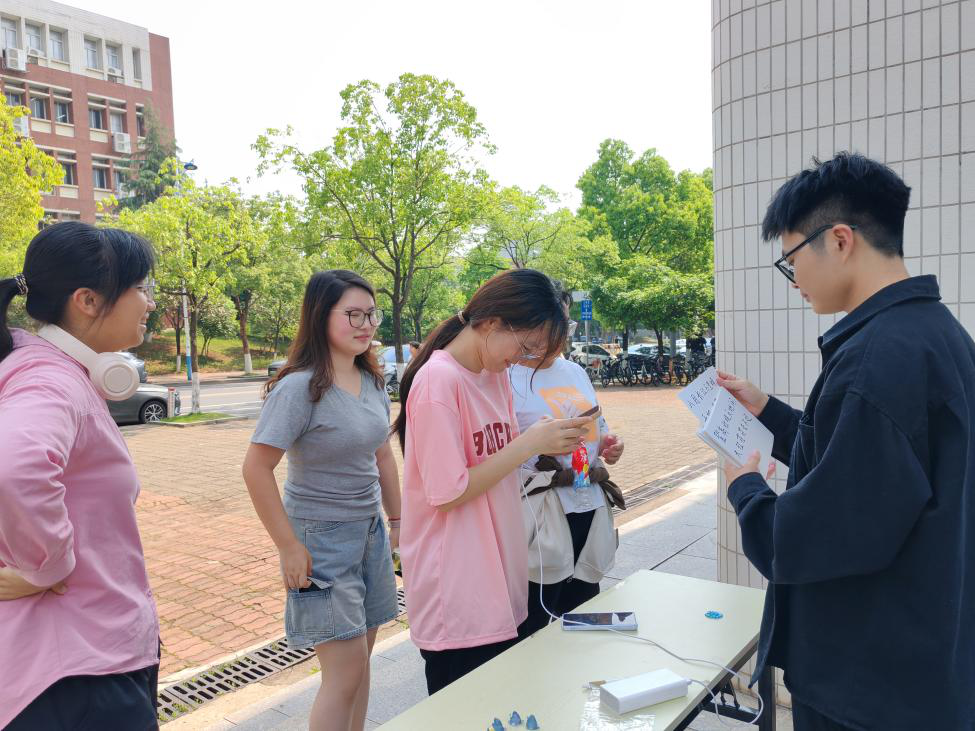 活动现场共设八个主题站点,各具特色。“寻宝奇兵”活动在图书馆前坪火热开展,参与者专注寻找隐藏的水文化知识卡片,并现场回答相关问题。知识丰富的同学对答如流,赢得阵阵掌声;认真思考的学子则带动了现场互动氛围,展现了求知若渴的精神风貌。