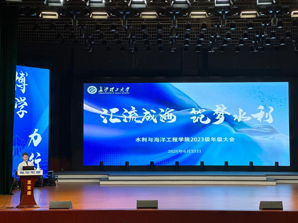 为进一步凝聚共识、筑牢防线,6月23日晚,水利学院在大会堂为全体2023级本科生召开了一场“干货满满”的期末年级大会。辅导员张海林围绕诚信考试、安全防线及学期盘点三大主题,为即将迎来关键节点的23级学生送上“叮嘱”,敲响“警钟”。