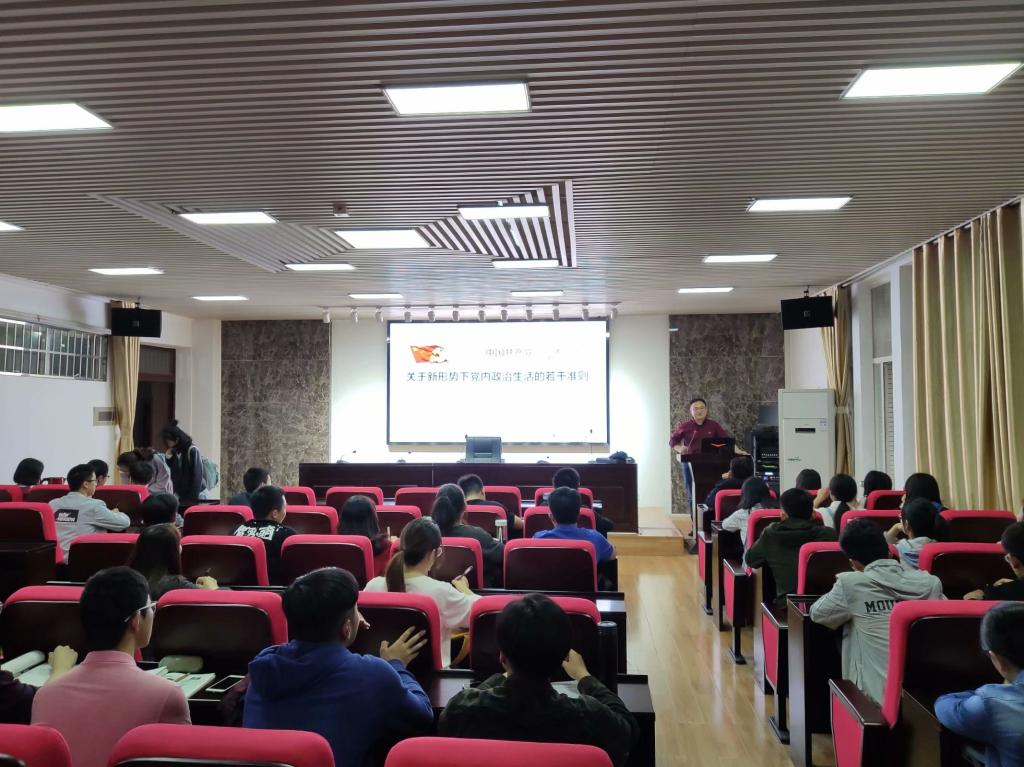 讲课主题为“关于新形势下党内政治生活的若干准则”,任志祥老师围绕《准则》的制定背景开讲,引申至 《准则》的重点和关键、特点分析、新旧《准则》对比等;最后提出思考题:大学生党员如何坚定理想信念?如何切实开展批评与自我批评?在本次党课学习中,课堂氛围融洽,学院们与老师互动良好,认真记录课堂内容,感受到党内政治生活离我们并不是十分遥远,反而与我们息息相关。
