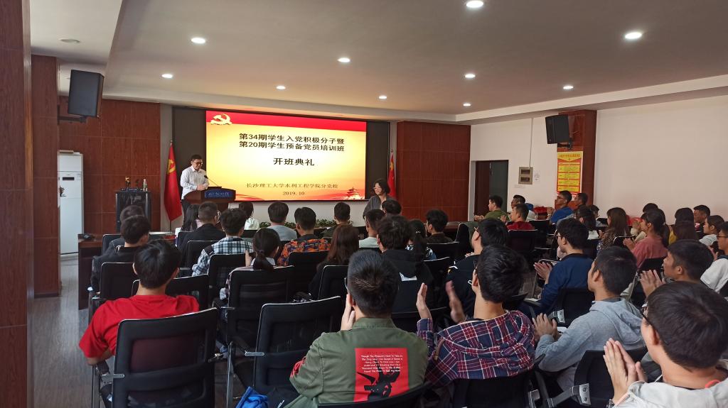 2019年10月31日,水利工程学院分党校于工科三号楼B319顺利举行学院第34期入党积极分子暨20期预备党员开班典礼。全体 26名预备党员培训班学员以及58名入党积极分子培训班学员到场参加,典礼由党校工作组成员王旭进行主持,党建辅导员邓奕琳老师到场并致辞。