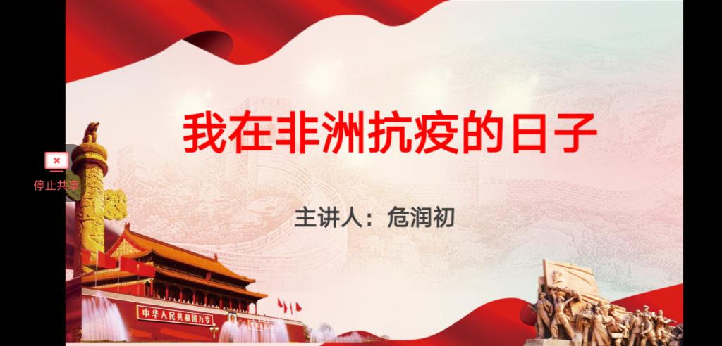 5月26日晚19:00,水利工程学院学生党总支开展了“我的战‘疫’ 党员初心”大讲坛活动。身在南非的水文系教工党员危润初老师以《我在非洲抗疫的日子》、2018级研究生党员王菲以《让守初心 践使命在日常和关键时刻都始终如一》为主题进行个人战“疫”故事分享。讲坛由学生党建辅导员黄远发主持,全体学生党员、发展对象参加。