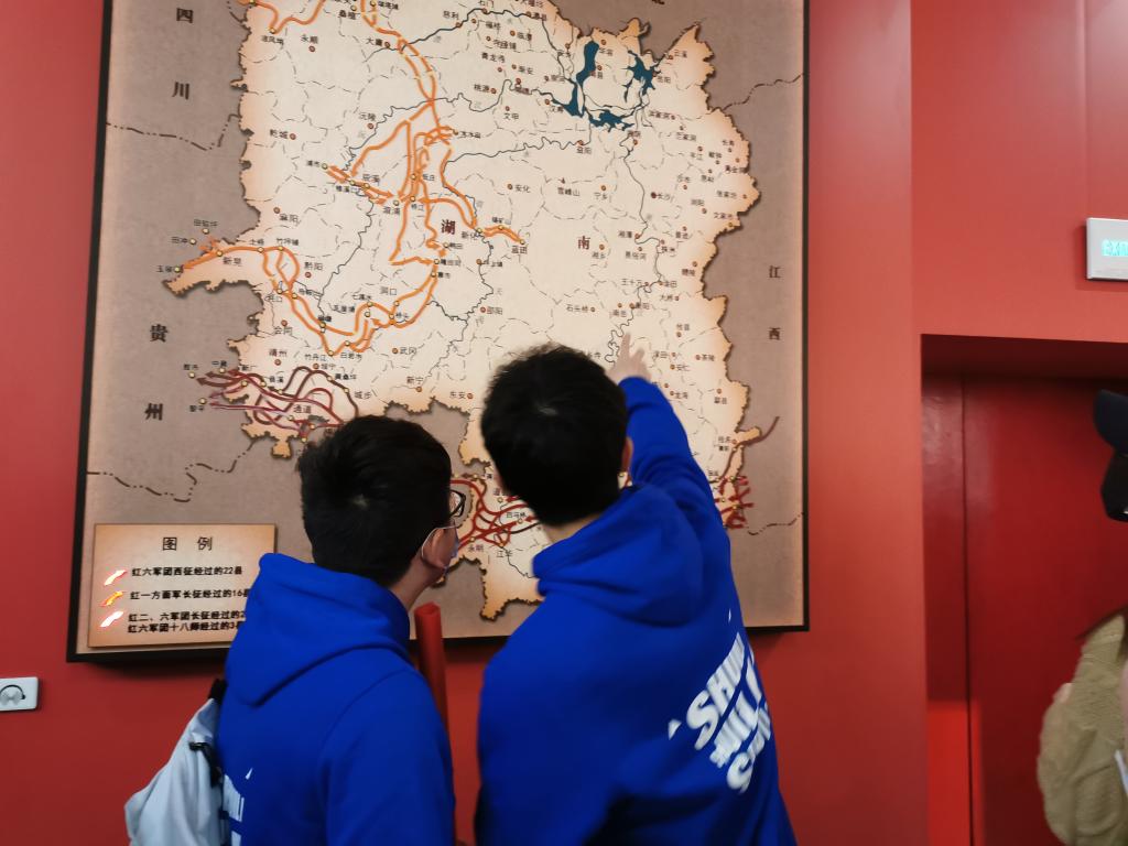 跟随着讲解员的脚步,同学们认真地在湖南党史陈列馆参观学习。陈列馆共有“开辟新天地”“描绘新画卷”“谱写新篇章”“三湘群英谱”四个篇章,全面系统地展现了党在湖南领导人民进行革命、建设和改革所取得的辉煌成就和宝贵经验。一段段珍贵的文字,一幅幅泛黄的老照片,一件件承载了历史记忆的文物,立体、生动、形象地展示了中国共产党在湖南波澜壮阔而又绚丽多彩的光辉历史。大家一路听、一路走、一路看,在党史熏陶和震撼中感受着精神洗礼,自发地在陈列馆进行了红歌传唱活动。