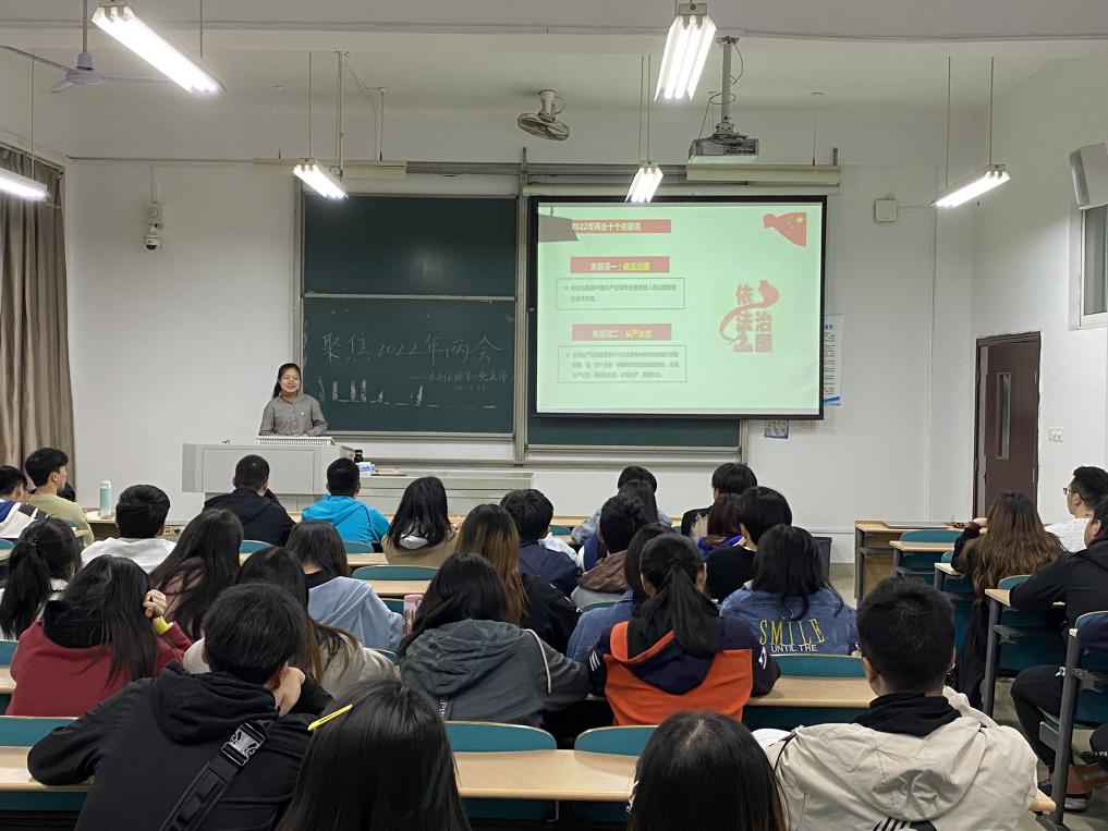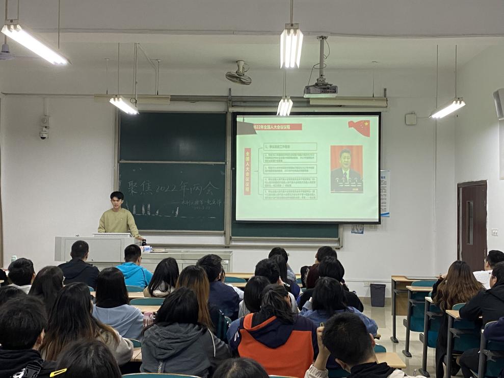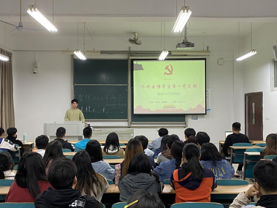 2022年3月18日,水利云塘学生第一党支部在工三A209组织召开“聚焦2022年两会”主题学习活动,参加活动的对象为支部入党积极分子,活动中主要针对近期结束的两会热点和理论知识进行学习。