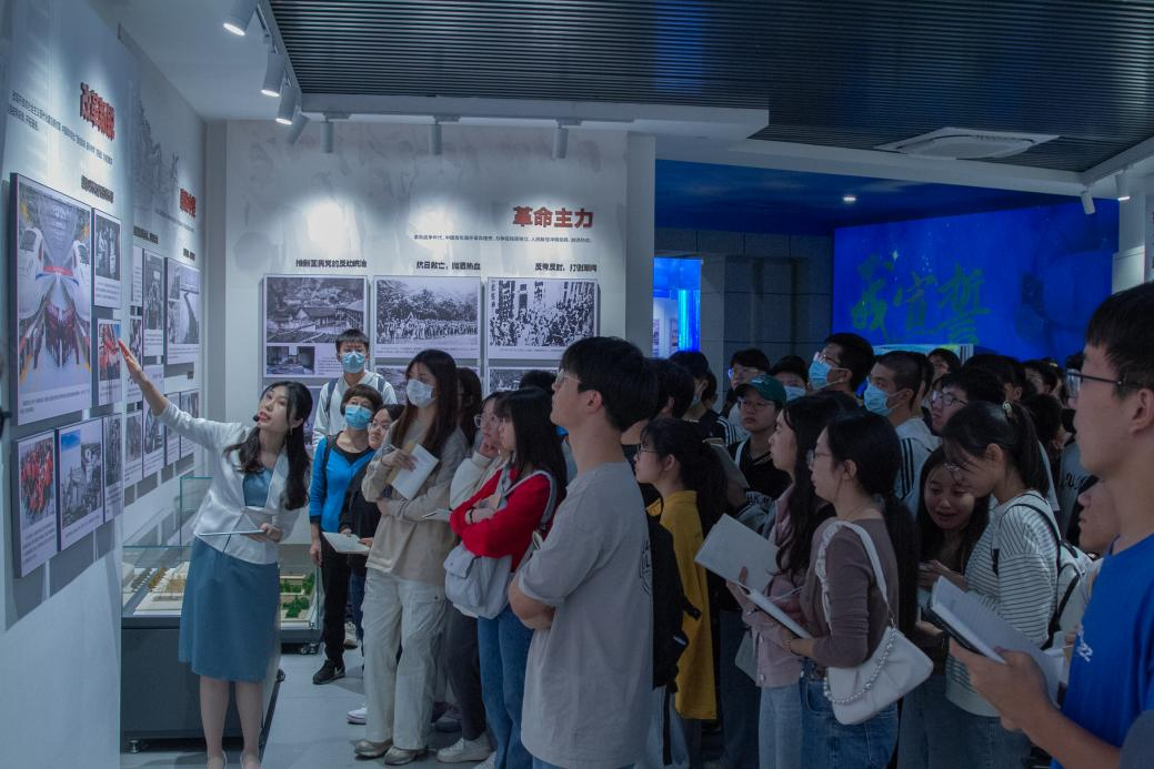 在三全育人馆中,学员们跟随老师的讲解,参观了“国之大者”“材之茂者”“师之贤者”“行之实者”四个篇章,开启对党的奋斗历程的寻根问脉之旅。从开天辟地红船建党到新民主主义革命、社会主义革命和建设、改革开放和社会主义现代化建设和中国特色社会主义新时代,党在各个历史时期的重大事件、先进典型和伟大精神生动的呈现在学员们的眼前。此外,郭媛还结合长理校友投身党和国家事业的先进事迹,激励学员们勇担时代使命,脚踏实地,踔厉奋发,以实际行动践行入党初心,积极向党组织靠拢。