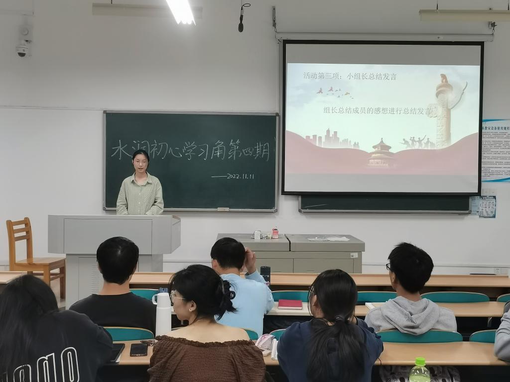 11月11日晚,水利学院在工三B213开展了第四期水润初心学习角活动。本次活动由本科生发展对象周雨欣主持,水润初心第四小组全体成员参与。