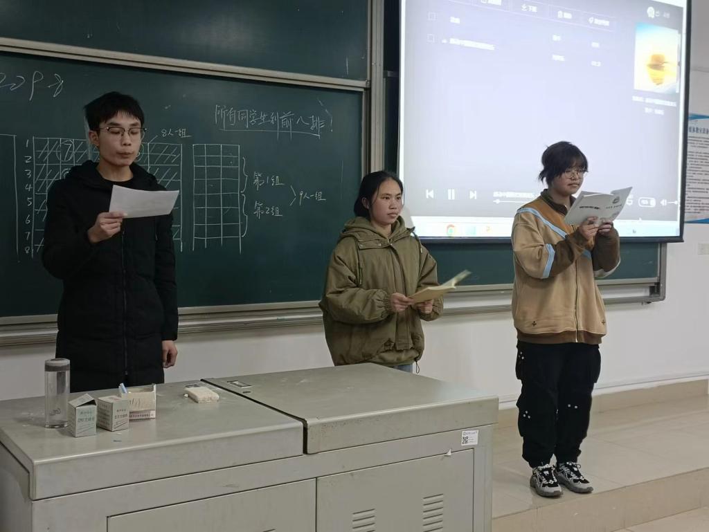 心得分享结束后,水文特岗2101班张欢、水利2101班汤亮、环工2201班袁萱仪上台朗诵感动中国节目组对于三位前辈的颁奖词,深沉的朗诵给此次论坛画上了圆满句号。此次论坛活动围绕三位老一辈建设者的人生故事展开了热烈的讨论分享,引导与会同志积极表达所思所感,激励广大入党同志坚定理想信念,矢志艰苦奋斗,不负青春,不负韶华。