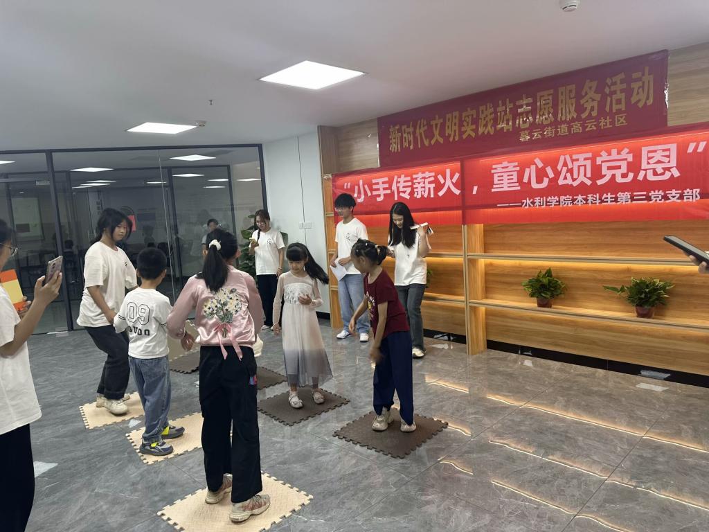 近日,水利学院分党校本科生第三党支部发展对象培训班第五小组走进高云社区,开展 “小手传薪火,童心颂党恩”主题实践活动。