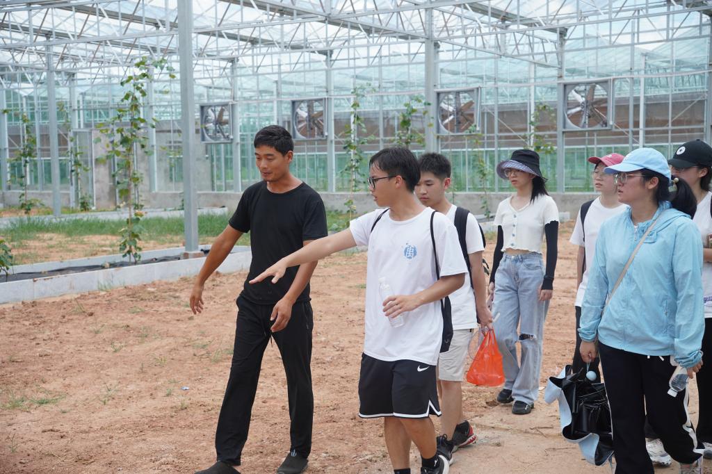 调研主要通过实地察看和访谈两种方式进行。调研团先与当地农业合作社负责人田主任进行交谈,并在田主任的带领下,调研了当地农业发展现状、灌溉水源现况和灌溉方法。调研团了解到当地有采用滴灌和喷灌的灌溉方法的区域——田园育才农业科普教育示范基地。跟随乔主任的步伐,调研团近距离观察了滴灌运作实况并了解其运行机理。通过与乔主任的交谈,调研团了解到该基地通过农业与旅游业结合的发展模式,带动当地经济发展,助力乡村振兴。
