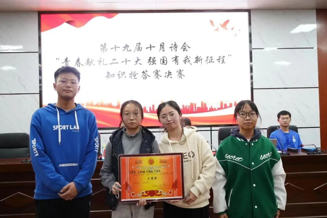 2022年10月至11月开云kaiyun体育举办第十九届十月诗会——“青春献礼二十大 强国有我新征程”知识抢答赛。经过一轮又一轮的比拼,水利与环境工程学院大放异彩,取得三等奖的优异成绩。