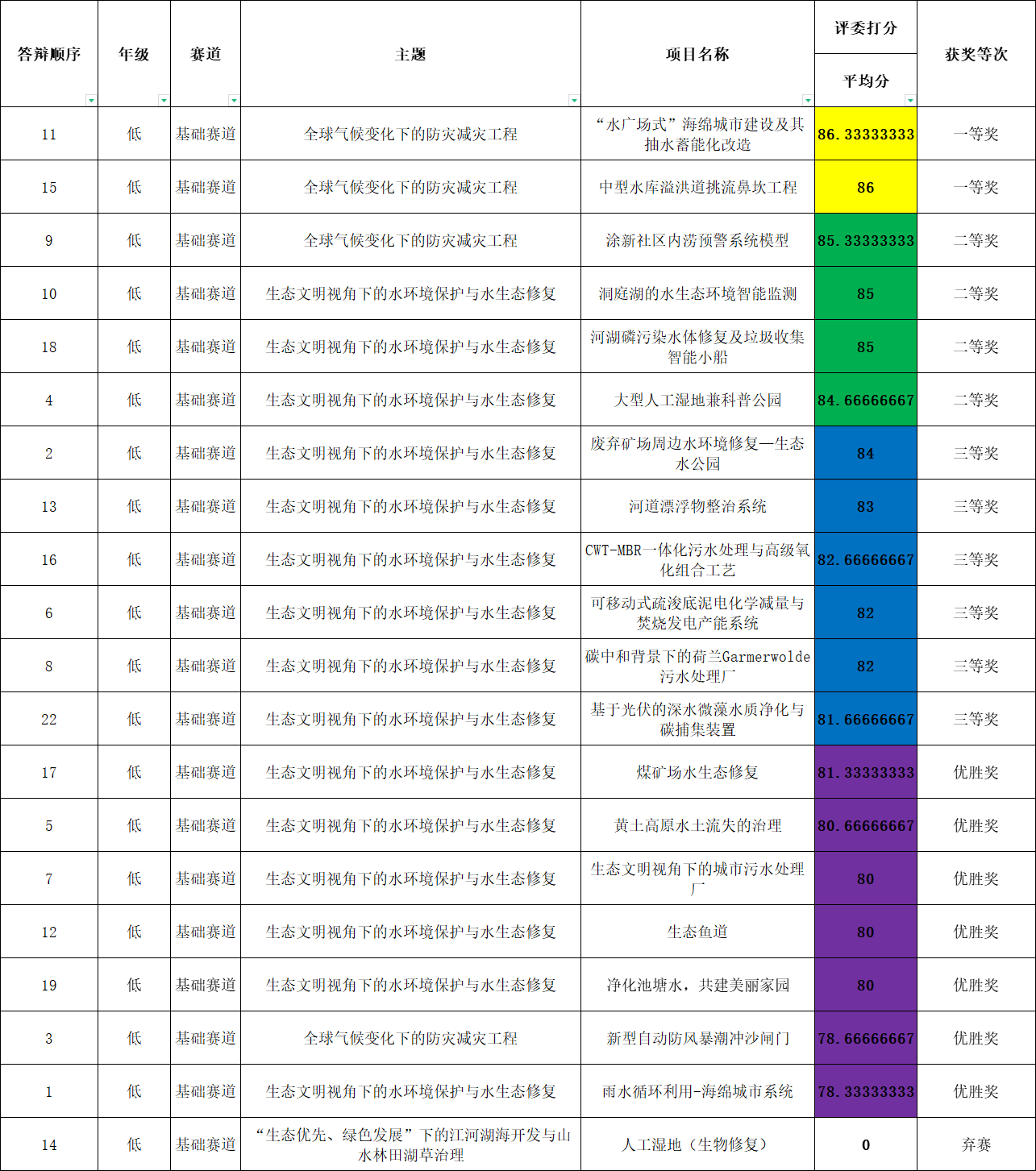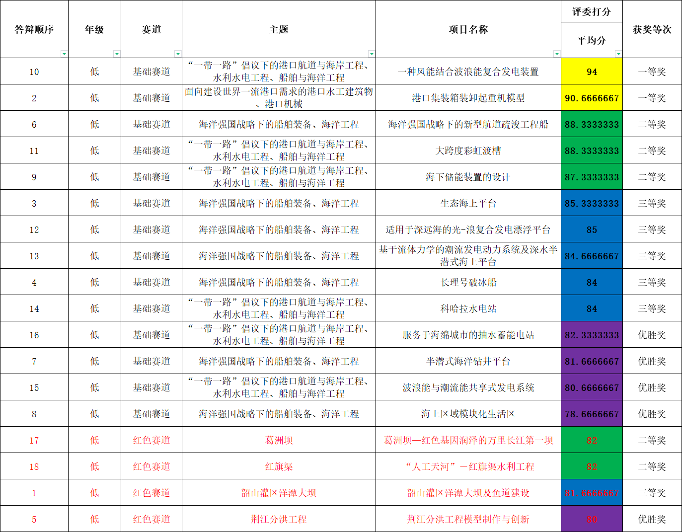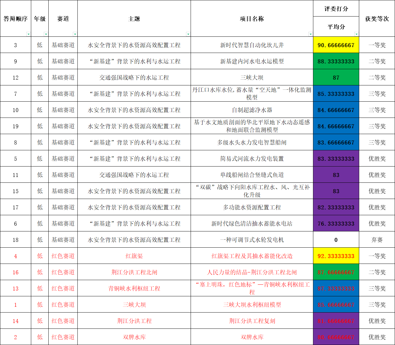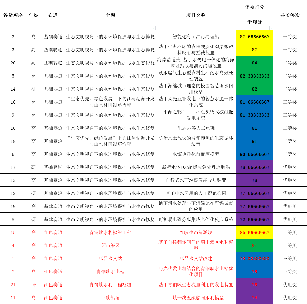 根据学校疫情防控形势,大赛组委会对赛制等要求进行了相应的调整,经过团队申报、评委筛选、线上初赛答辩等环节,高年级组基础赛道共评选出一等奖4组,二等奖7组,三等奖11组,优胜奖12组;高年级组红色赛道共评选出一等奖1组,二等奖1组,三等奖2组,优胜奖2组。低年级组基础赛道共评选出一等奖7组,二等奖12组,三等奖21组,优胜奖22组;低年级组红色赛道共评选出一等奖1组,二等奖3组,三等奖3组,优胜奖3组。其中,所有获评一等奖的参赛队伍参加决赛答辩(答辩时间另行通知)。开云kaiyun体育第三届“大禹杯”水利模型创新设计大赛初赛结果如下: