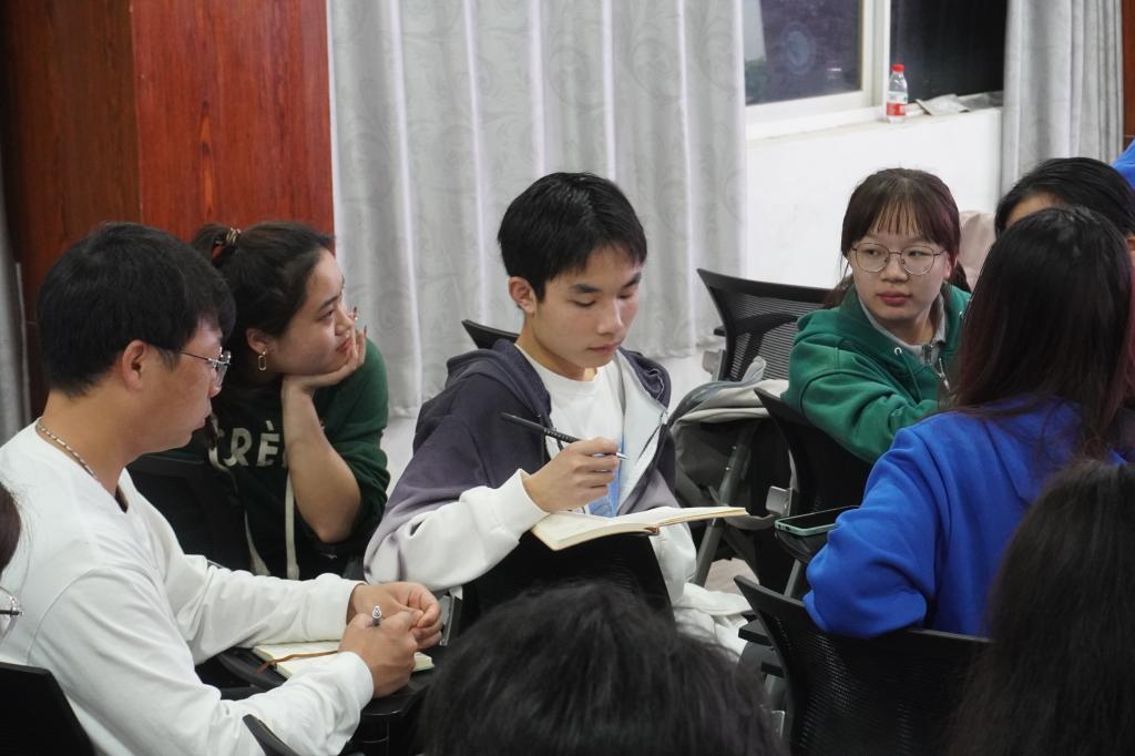 研讨会上,学员们围绕“学生干部如何‘接力、借力、助力、聚力、合力、竭力’”进行小组讨论,在此过程中,学员们激情投入,共鸣思考,探讨内在奥秘,最后,经过三十分钟的思维碰撞,各组代表阐述观点,吴琼从自身经历出发,强化责任的重要性,要立足本职,发挥个人领导力和团队聚合力;戴煜强调善用多方资源,借力多元平台,实现资源互补,协同发力......