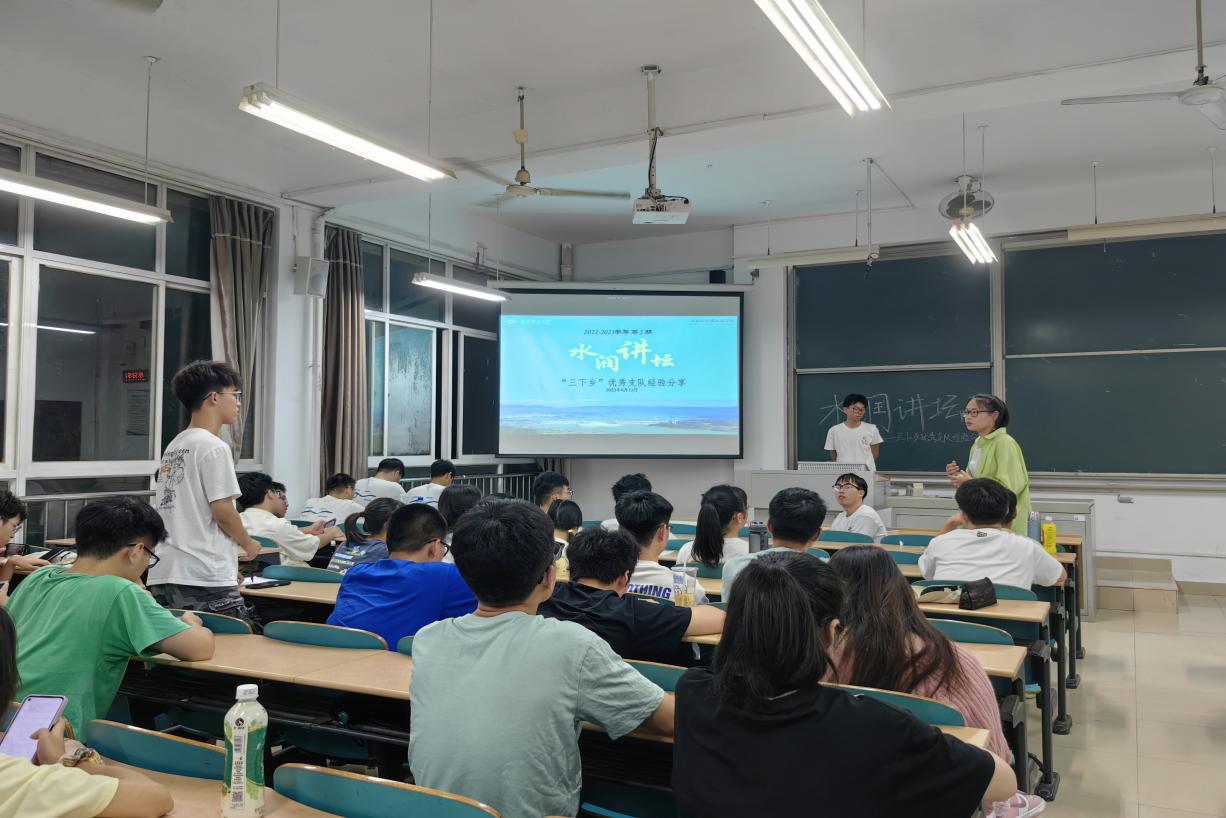 6月13日晚7点,水利与环境工程学院在云塘校区工科三号楼A-205室举办第5期“水润讲坛”——暑期三下乡社会实践经验分享会。本次讲坛由2021年度“中国大学生自强之星”、2020年全国大中专学生志愿者暑期“三下乡”社会实践活动优秀个人唐佳、2022年“三下乡”社会实践优秀团队负责人李修儒等主讲,2021、2022级60余名同学参与本次分享会。活动由院团委实践部部长汤亮主持。