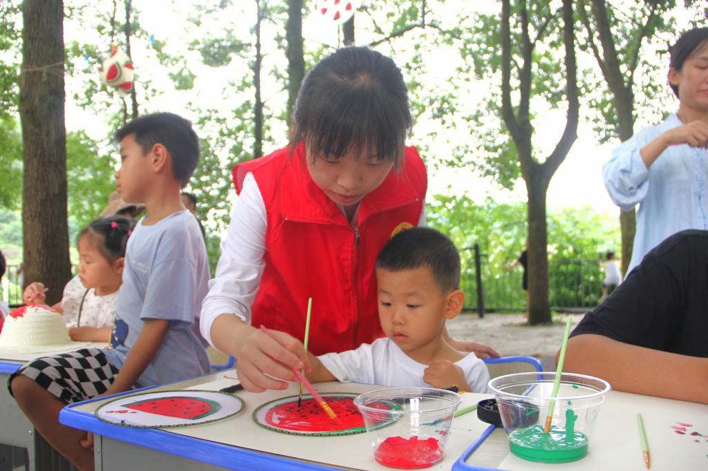 团队成员化身最美志愿者参与第三届“双塘小学西瓜丰收节”,协助完成西瓜采摘搬运的前期准备工作,还全程负责现场以西瓜为主题,圈圈套西瓜、西瓜接力比赛、吃西瓜比赛等互动性极强的游戏环节。欢笑声此起彼伏,让在场的所有人沉浸在欢乐的海洋里。“你们这个队伍真是不错!”团队成员耐心细致地组织引导、踏实肯干的积极表现获得了学校老师一致赞扬。