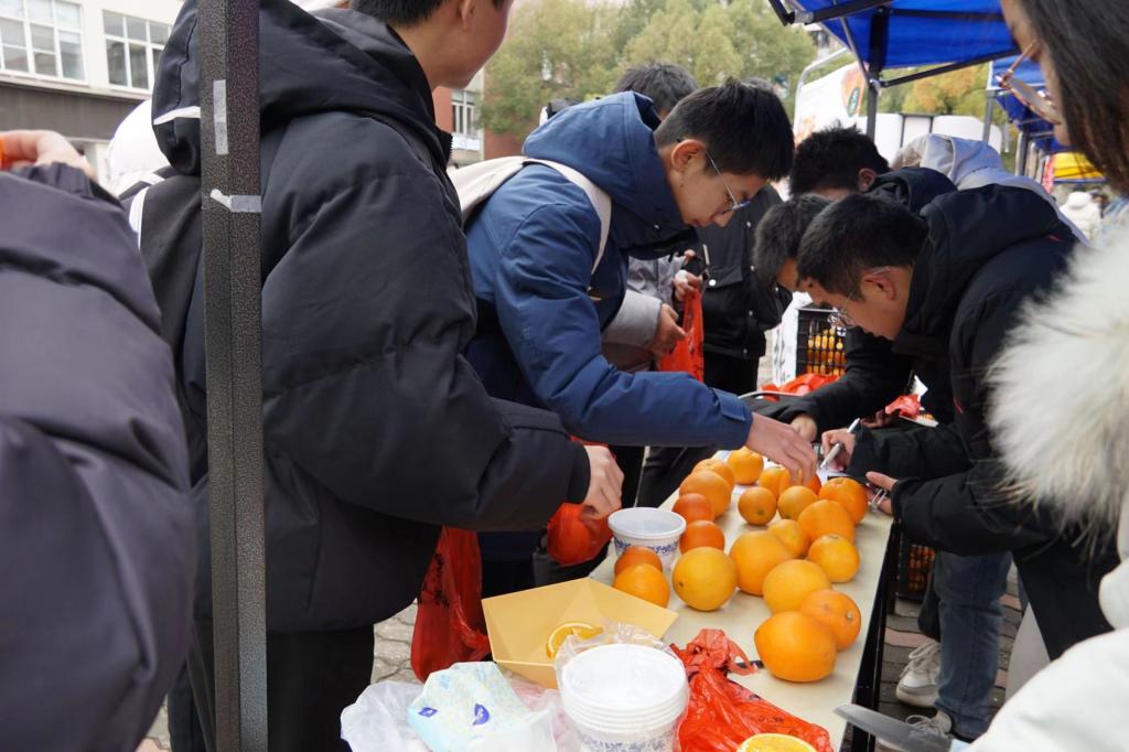 本次大赛采取“以购代捐”的方式帮助农民销售脐橙,“脐”心“脐”力推进消费帮扶,“橙”心“橙”意助力农民不再返贫。经过5天时间,累计售出脐橙1300余斤,取得了较好的成果。在整个销售过程中,销售方式丰富多彩、各具特色;有的将橙子在加工成果盘叫卖,有的推出免费试吃活动......这些创意活动稳稳抓住了消费者的购买欲。同时本次活动还开辟了线上销售渠道,售卖员根据线上订购配送点送至指定区域,为同学们提供了便捷式服务。
