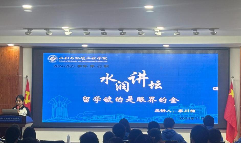 11月7日晚,水利学院在云塘校区工科三号楼B-319室举办第40期“水润讲坛”之出国留学经验分享会,本次讲坛邀请到了曾前往英国卡迪夫大学留学的水利研2101班李川楠同学主讲,活动共吸引了100余学生参加。