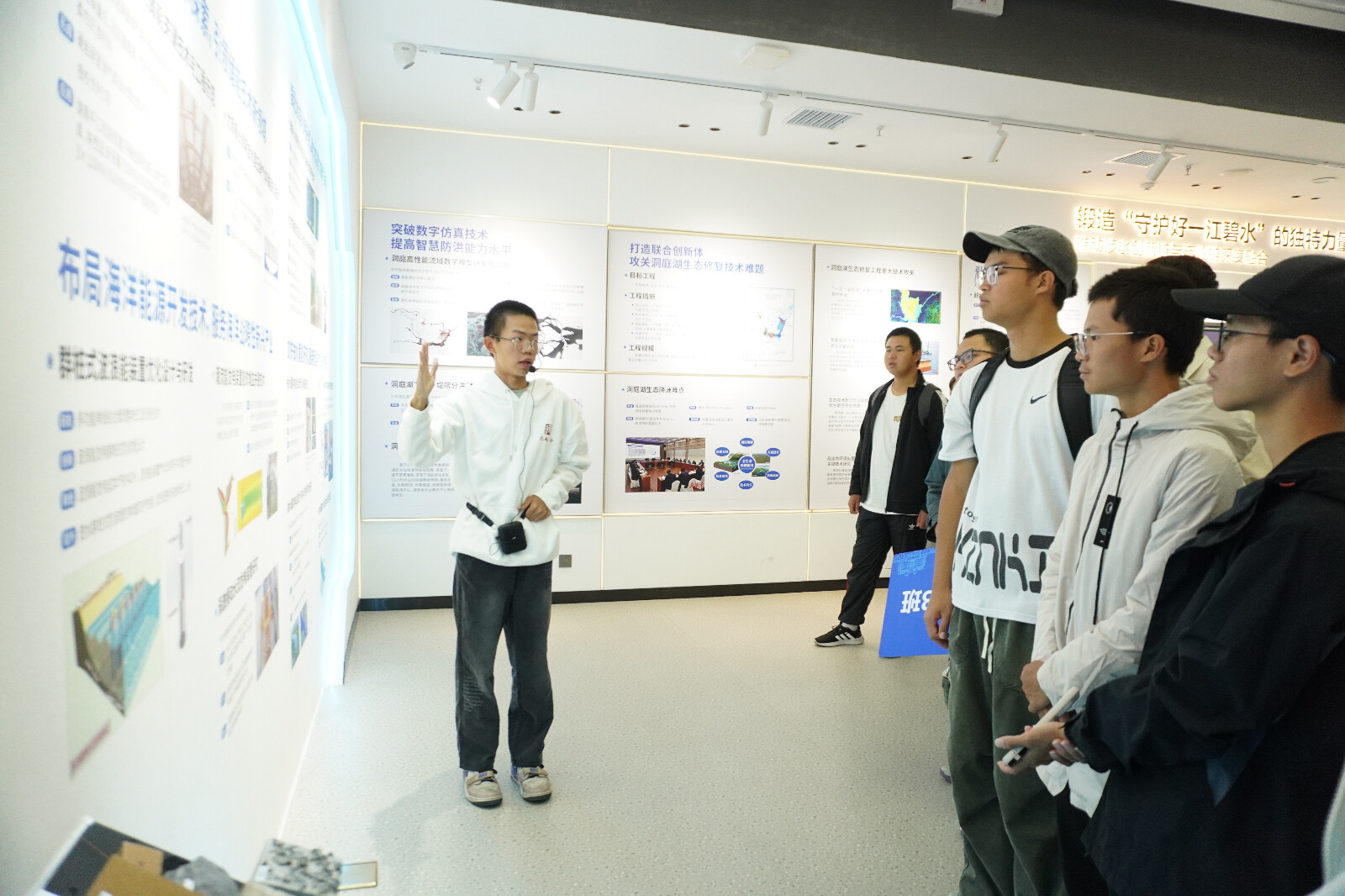 在讲解志愿者的带领下,2024级研究生有序地走进了实验室。志愿者为同学们详细介绍了在水环境治理和生态修复方面的研究成果和技术应用,展示了高桩码头、拱坝、鱼道、沙槽、船闸等水利工程结构模型,并讲解了水利工程设施的组成及工作原理。同学们认真聆听讲解,与志愿者们积极互动交流。