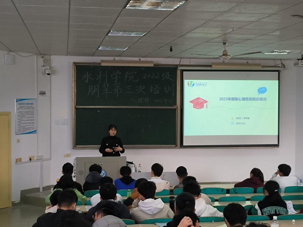 4月25日,水利学院在金盆岭校区六教310教室举行2022级朋辈心理互助员第三次培训。本次培训由校心理健康教育中心李子萱老师主讲,培训内容为《大学生心理问题的识别与处理》,培训对象为2022级各班心理委员、寝室长及实践团成员。