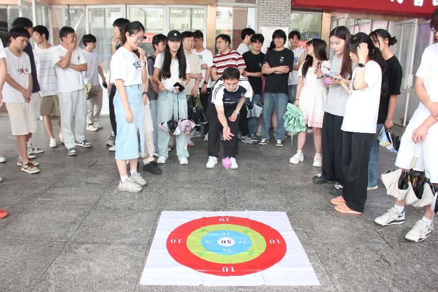 活动紧扣“5·25我爱我”心理健康日主题,将专业性与趣味性相结合。参与者首先扫码完成25道心理健康知识测试,答题正确率越高,获得的沙包数量越多。随后,同学们以小组形式进行投沙包积分赛,沙包落点对应不同分值,团队协作中既考验技巧,更传递了互助共享的温暖。活动还设置了丰富奖品,包括精美笔记本、帆布包和文具等,激励同学们在竞技中收获快乐与成长。