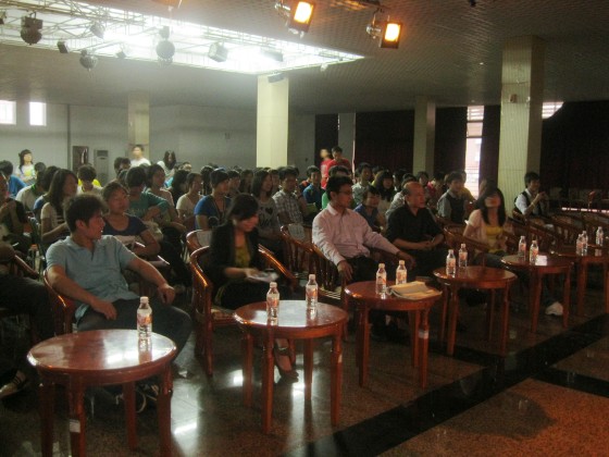 在大家的欢呼声中,主持人宣布晚会的开始。整场晚会有三段心理访谈组成,期间穿插着由同学自导自演的《宫锁心玉水利版》,幽默而生动的表演一度将晚会带向高潮。在每段心理访谈之前便是进行访谈同学拍摄的VCR,每个人都讲出了自己近期的压力,由叶正芳老师现场当面解答。分别以“学习”、“爱情”、“就业”为主题进行访谈。