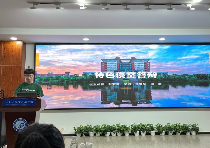 本次评比分为思想引领型、文明养成型、多才多艺型、科学研究型以及全能型五个类别。答辩现场,12个候选寝室代表以视频、图片、PPT等形式从寝室成员组成、寝室文化建设、成员获奖以及未来前景等方面讲述了寝室成员在逐梦路上脚踏实地、奋发图强的奋斗历程,充分展示了寝室积极向上、和睦融洽的氛围。
